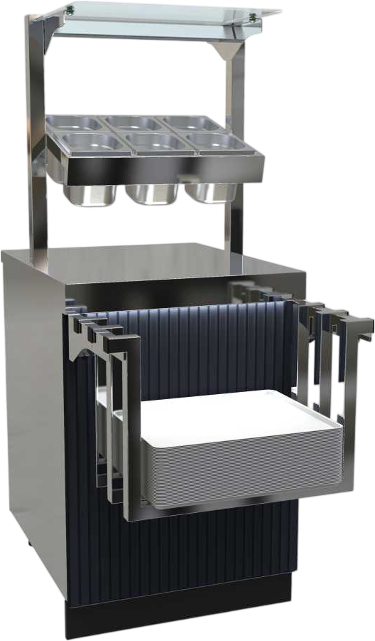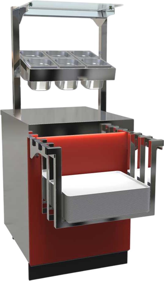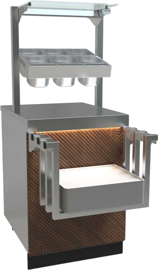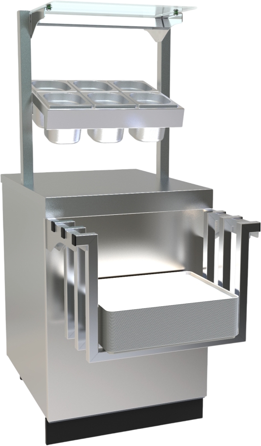 Прилавок ABAT ПСПХ-70Е предназначен для хранения и раздачи подносов, столовых приборов, а также хлеба на предприятиях общественного питания и торговли. Оснащён полкой для приборов, полкой для хлеба и светодиодным светильником, установленным под нижней полкой. Имеет регулируемые по высоте ножки.