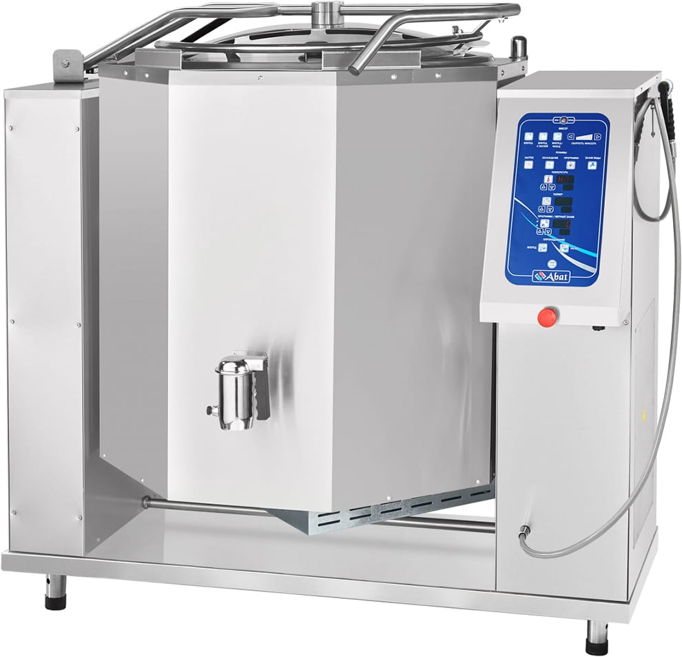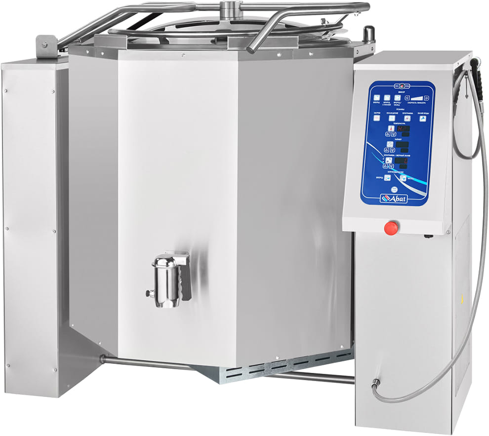 Опрокидывающийся электрический пищеварочный котёл ABAT КПЭМ-350-ОМ2 со сливным краном предназначен для кипячения воды, приготовления бульонов, супов, соусов, кремов, каш, омлетов, плова, рагу, карри, пюре и других блюд на предприятиях общественного питания и пищевой промышленности крупного формата. Благодаря усиленной конструкции миксера, плавной регулировке скорости и функции реверса данная модель может быть использована для взбивания и перемешивания практически любых продуктов. Нагрев воды производится способом "пароводяной рубашки". Оснащён электронной панелью управления и откидной крышкой, которая может быть зафиксирована в верхнем положении. Обновление программного обеспечения производится через USB-порт.