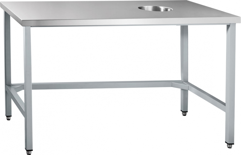 Стол для сбора отходов ABAT ССО-1 предназначен для обработки ингредиентов для приготовления блюд и сбора пищевых отходов на предприятиях общественного питания и торговли. Оснащён сифоном, имеет пристенный бортик и регулируемые по высоте ножки с резиновыми вставками. Столешница изготовлена из нержавеющей стали с подложкой из влагонепроницаемой фанеры толщиной 12 мм.