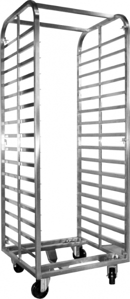 Тележка-шпилька ABAT ТШГ-11-8-6 предназначена для быстрой загрузки и выгрузки гастроёмкостей в расстоечный шкаф ШРТ‑18 и ротационный пекарский шкаф РПШ-18. Имеет 4 термостойких поворотных колеса. Изготовлена из нержавеющей стали.